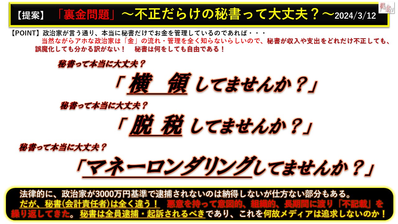 20240312 裏金 そもそも秘書は大丈夫なの