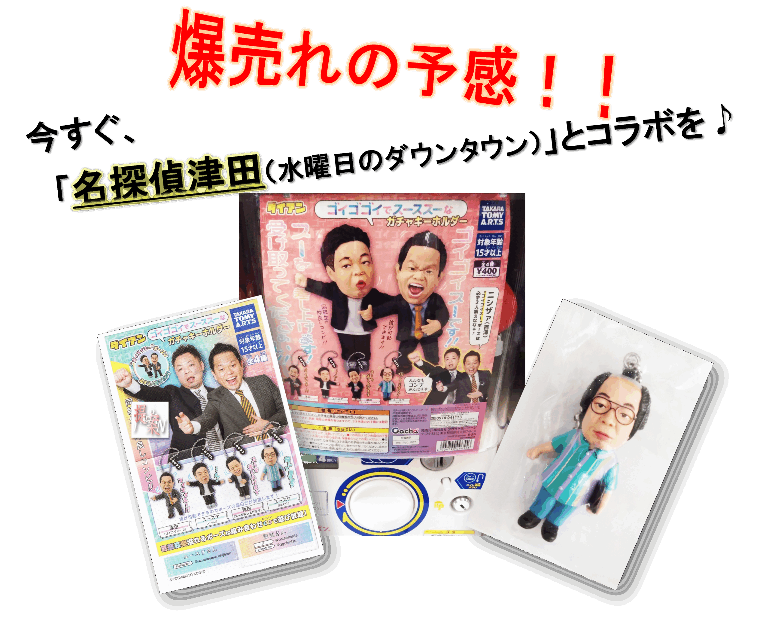 先日、ガチャコーナーで「ダイアン ゴイゴゴイでスーススーな ガチャキーホルダー 全4種 同級生の仲良しコンビ!!」というのを見つけた!