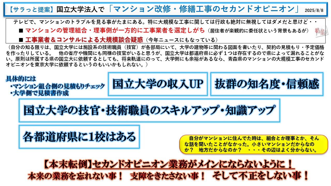 国立大学法人で「大規模マンション改修・修繕工事のセカンドオピニオン」
