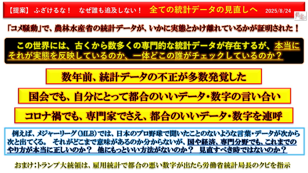 「令和のコメ騒動」によって、農林水産省の統計(データ・やり方・方法)が、実態を把握していないことが立証されてしまった!