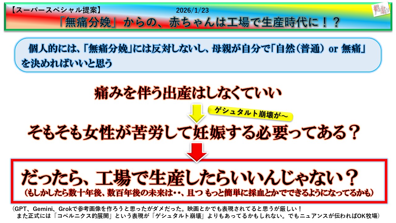 映画とかマンガでも出てくるような提案ですが、無痛分娩の議論を聞いていたら・・・ゲシュタルト崩壊?