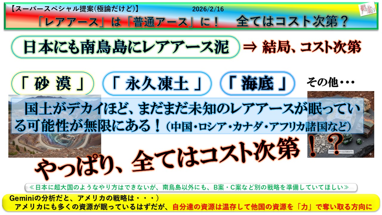 GPTやGeminiの見解では、まだまだ知られていないレアアースは大量にありそうで、特に「砂漠」「永久凍土」などは可能性が高いと思われる