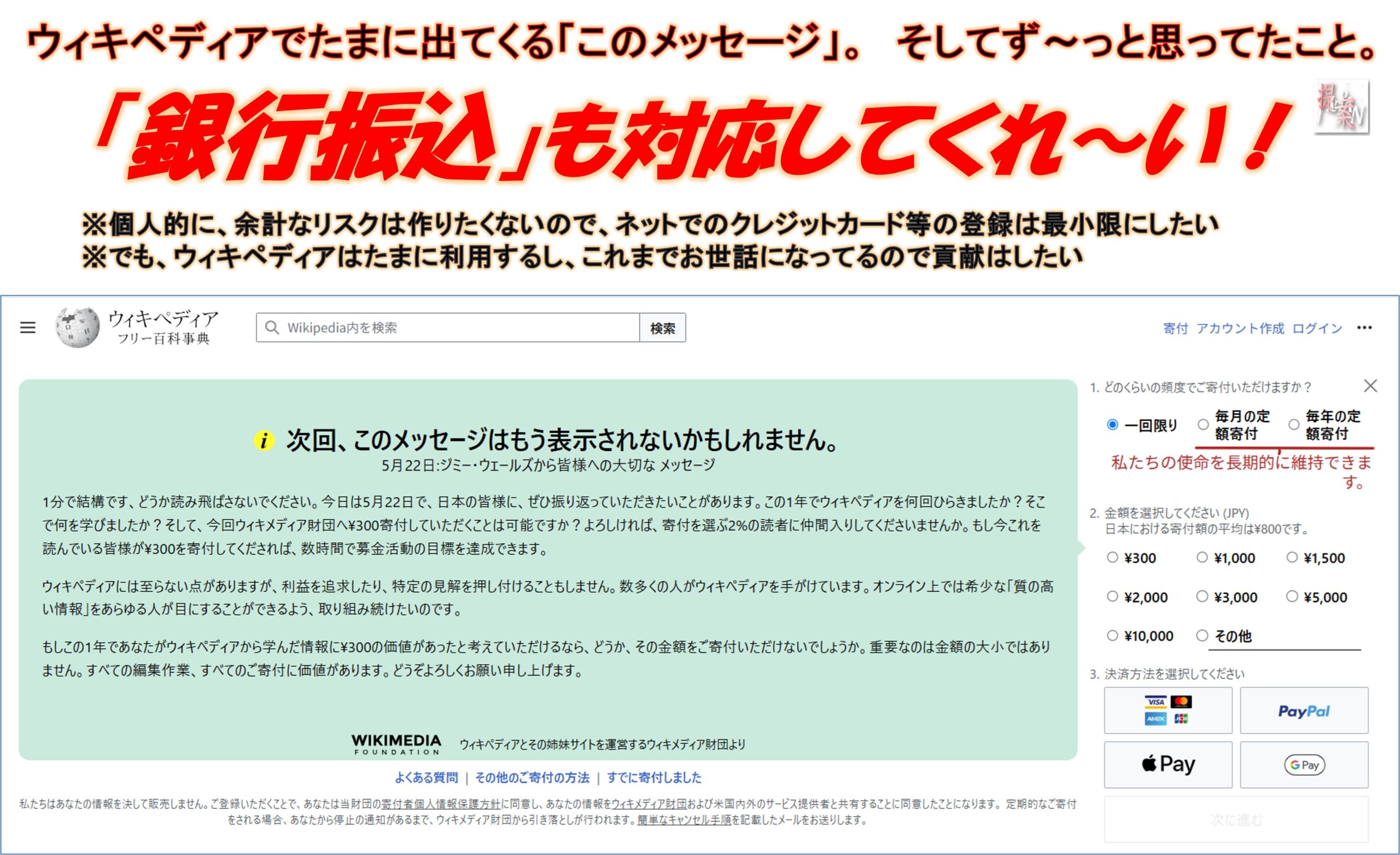 ◆ 2025年11月(資料作成) ウィキペディアを支援したいのに何で「銀行振込」がないんや~