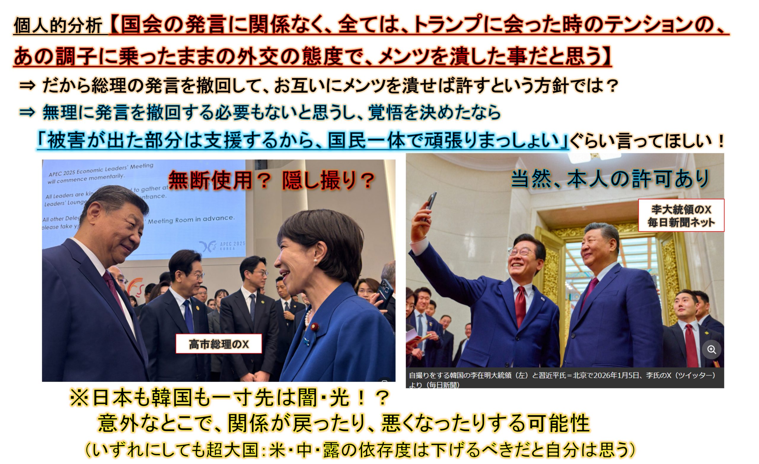 ◆ 2026年1月7日 本当のポイントは「台湾有事発言」ではなく「メンツを潰した」ことでは?
