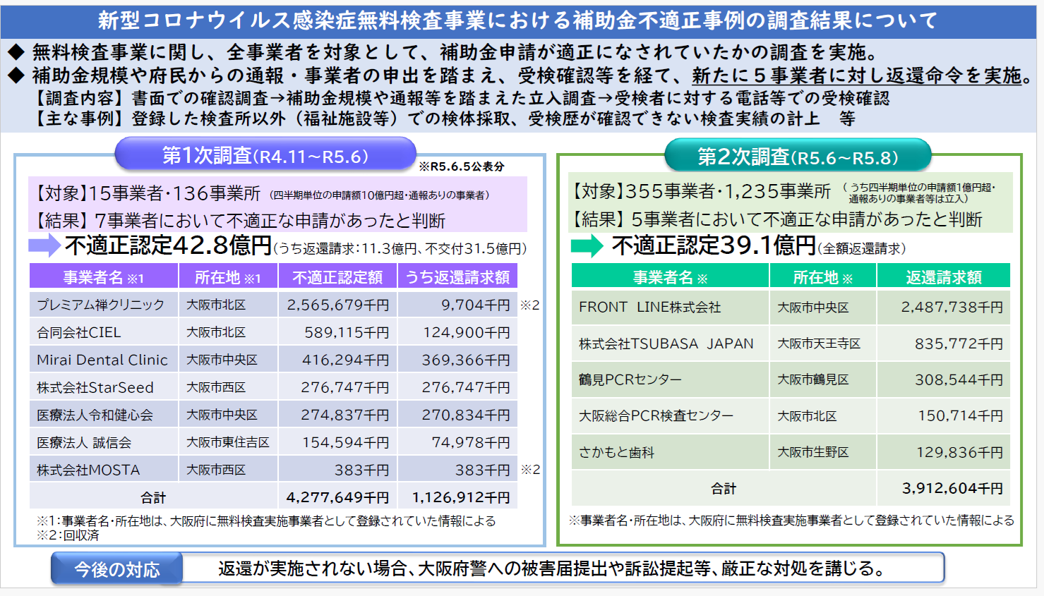 ⇒ 厚労省は、約1億1千万円の返還を求めている