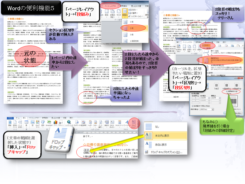 過去に「使える」と思ってマニュアルを作っていたものですが、何かお役に立てればうれしいです。一応、実際にWordで確認しました。