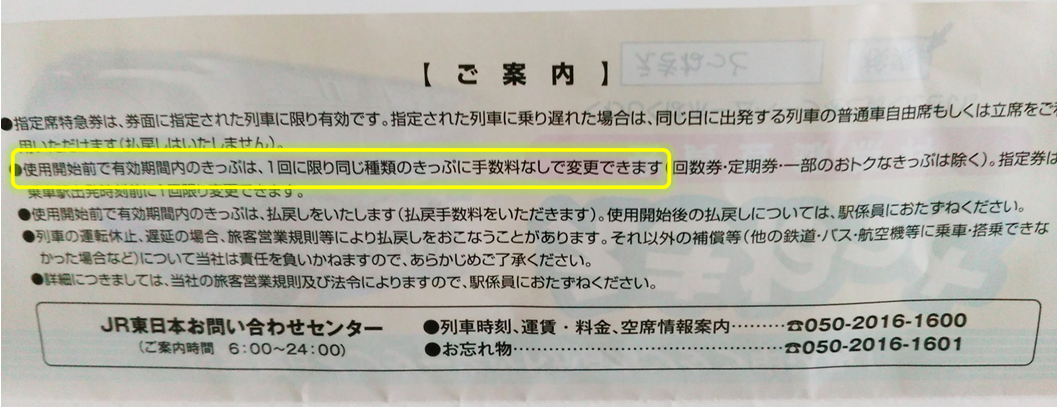 JR 新幹線の切符(きっぷ)の変更は1回につき無料です