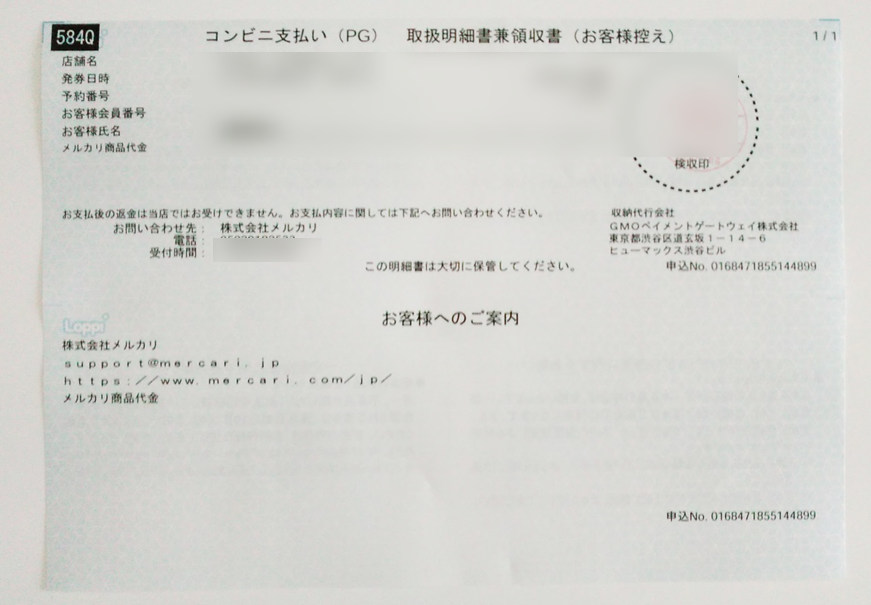 ■支払いが完了すると、下のような領収書(控え)が渡されます。