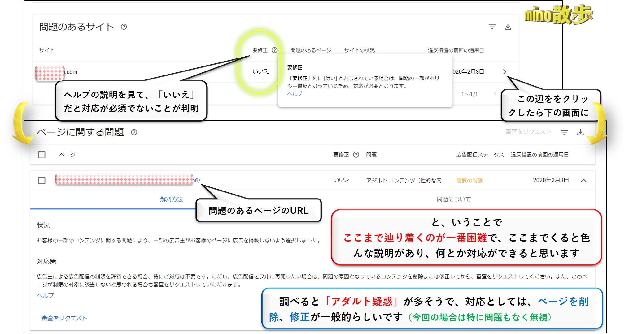 Google AdSenseの「サイト運営者向けポリシー違反レポート」・・・