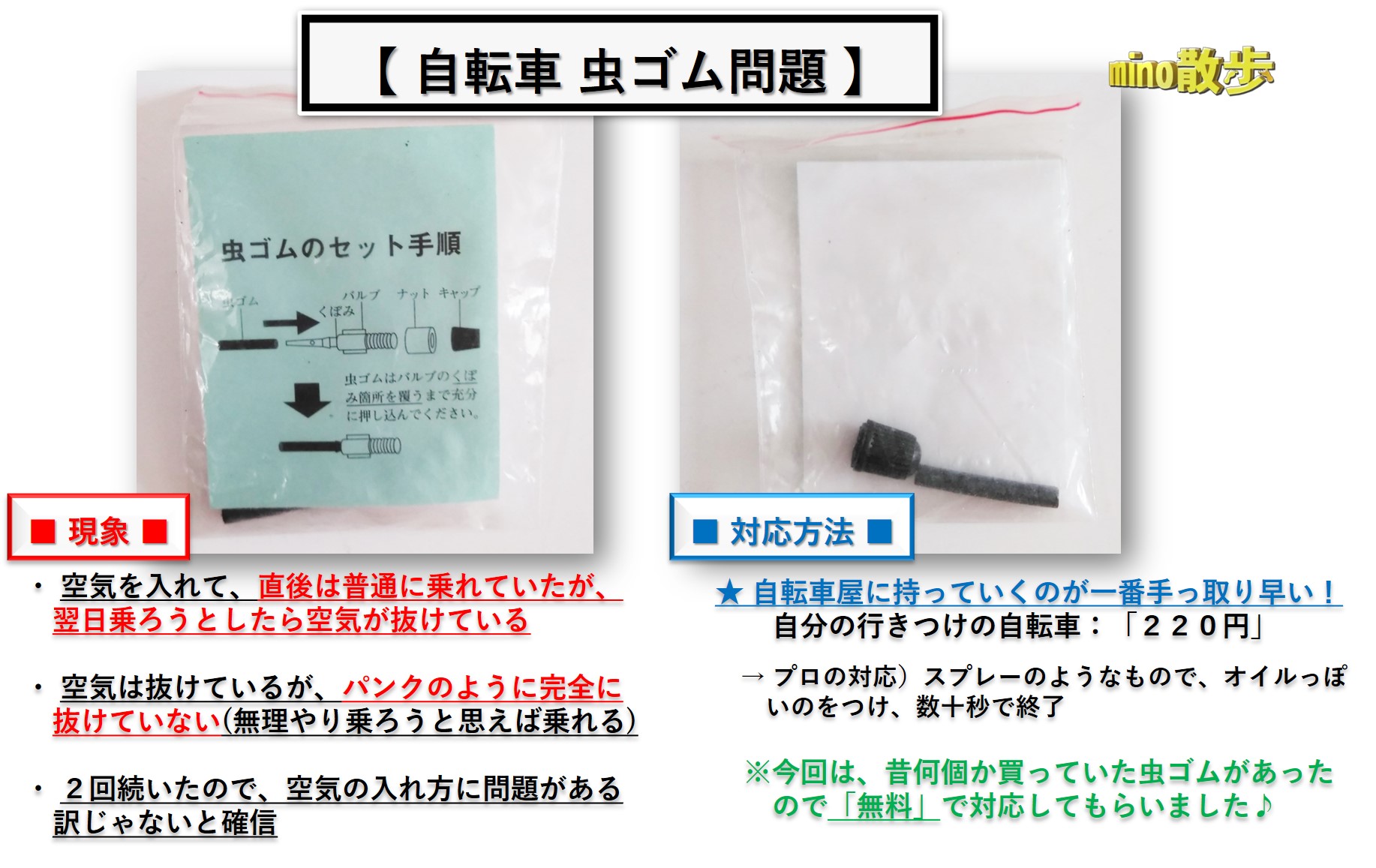 ★対応は「自転車屋に持って行って、サラッと修理(虫ゴムの交換)してもらった」