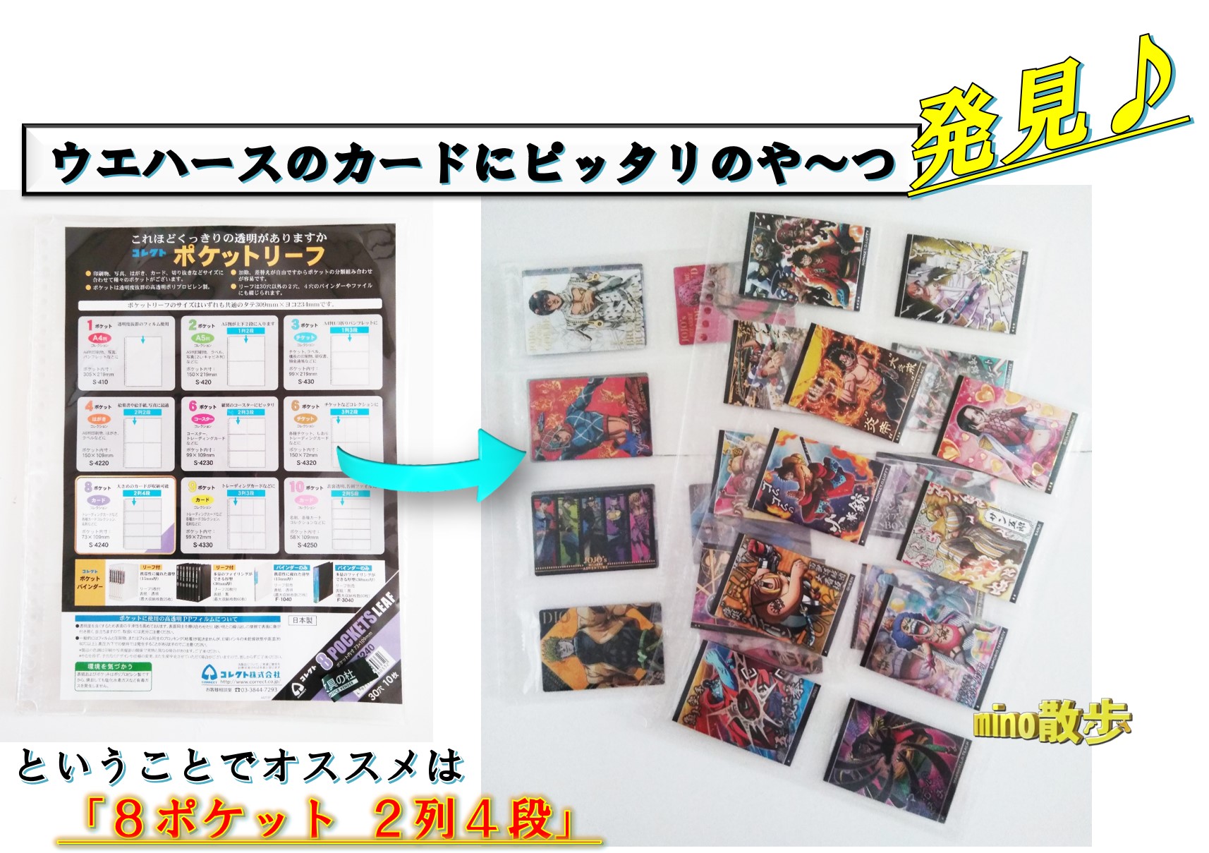 最近、色んなウエハースを買うようになったのですが、カードを未開封の袋入りの状態で保管しようと思い、ずっと100円ショップで探してましたが見つけられず、文房具店でようやく発見しました♪