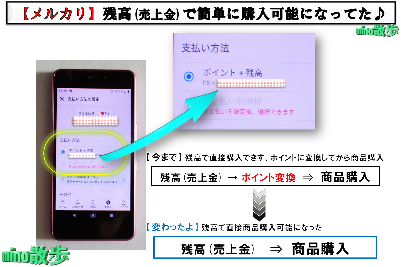 これまではポイントに交換して商品購入という、ひと手間余計でしたが、やっと残高(売上金)をそのまま利用できるようになったみたいです。