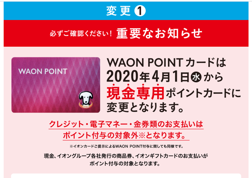 と、いうことで2020年4月1日(あと1か月ちょっと)で、現金専用のポイントカードになってしまいます。