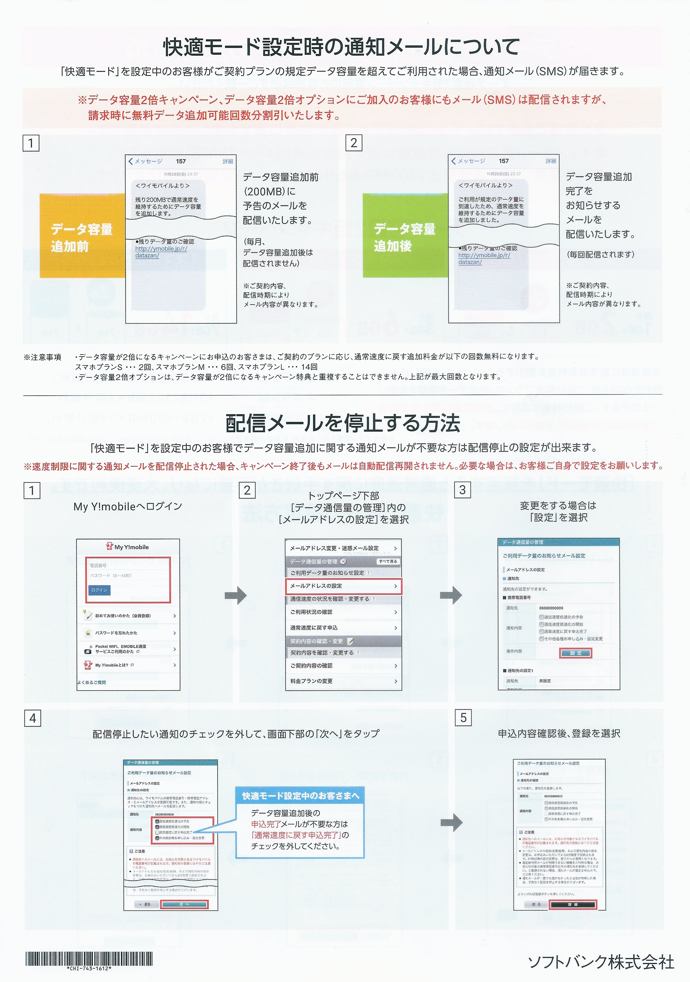 ●キャンペーン適用時も通常速度に戻す案内の通知メール(SMS)は届きます