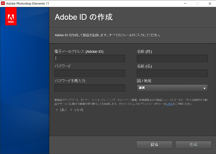 それは「Adobe IDの作成」