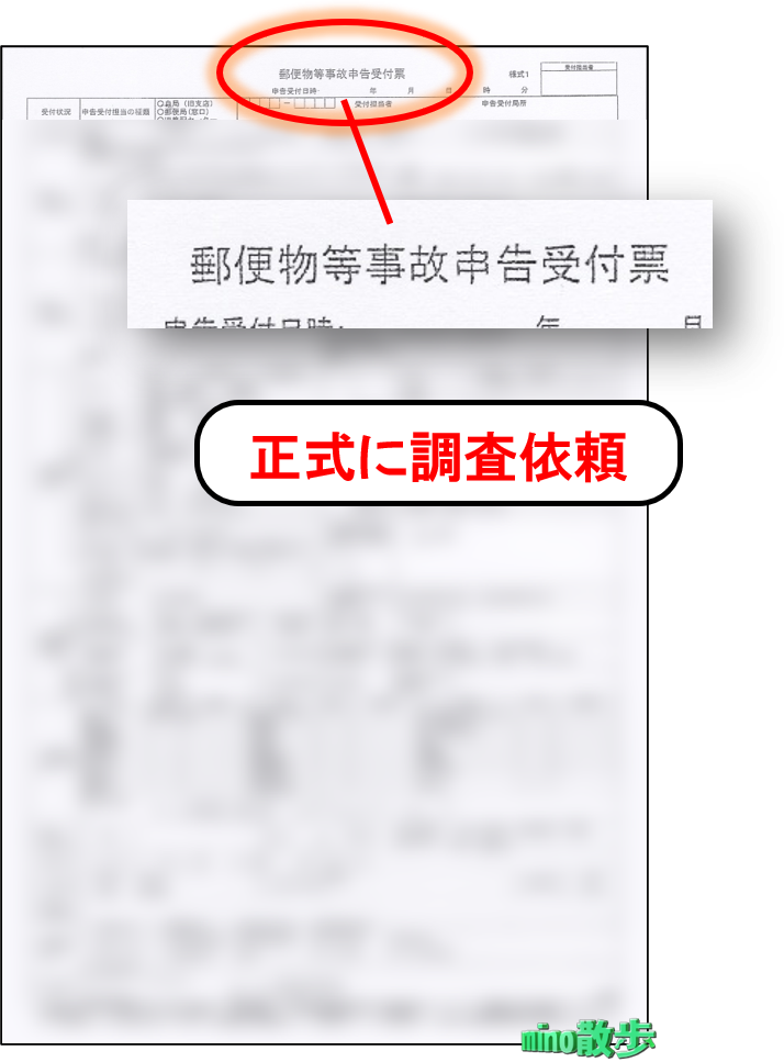 ・郵便局と話し合い、正式に調査を実施するため「郵便物等事故申告受付票」を提出