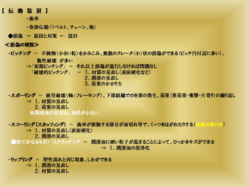 「伝動装置(損傷の種類や設備診断など)」についてのマニュアルですが、かなり前に作成したものなので、詳細な説明ができません。