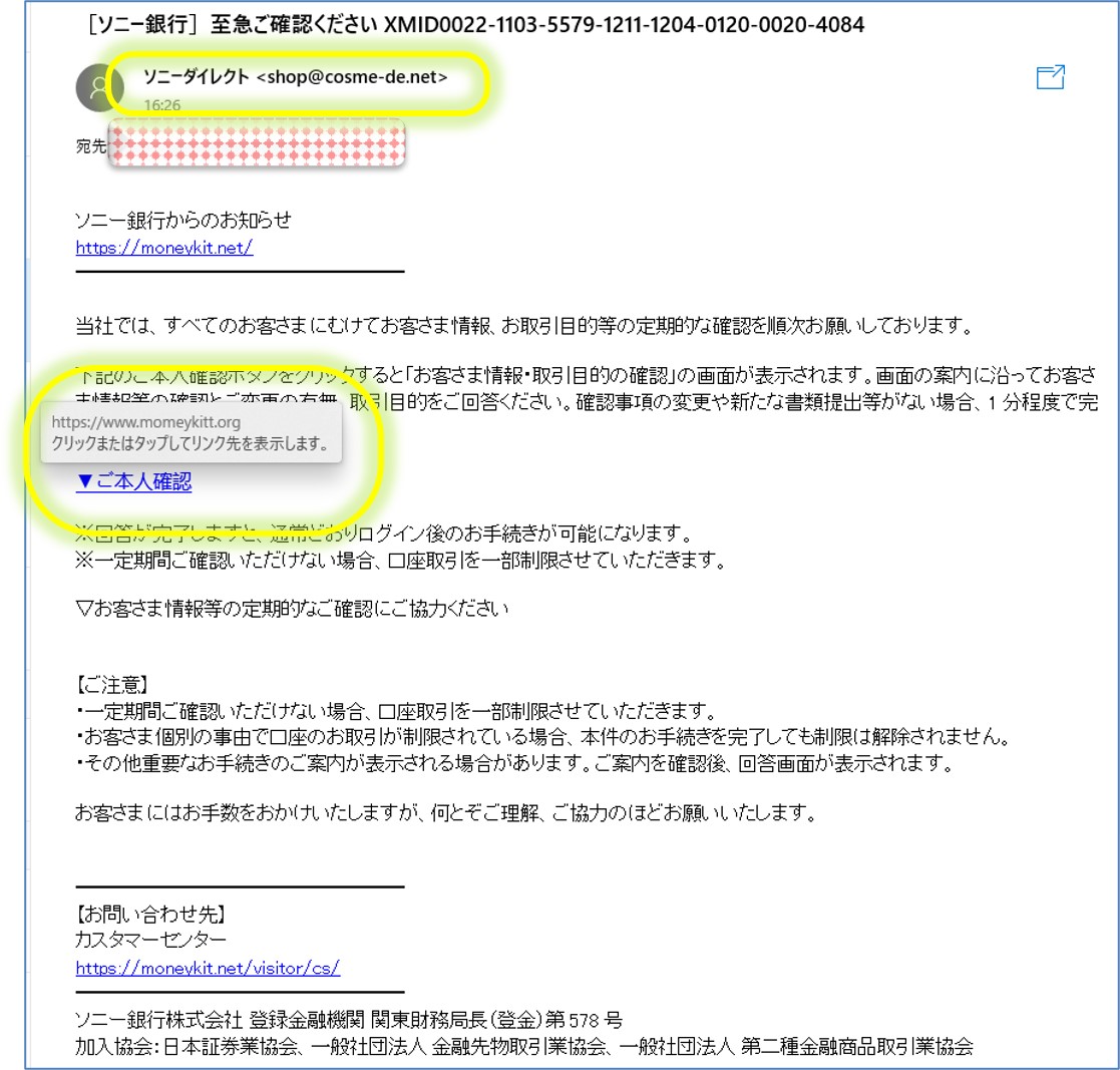 【ソニー銀行】至急ご確認ください