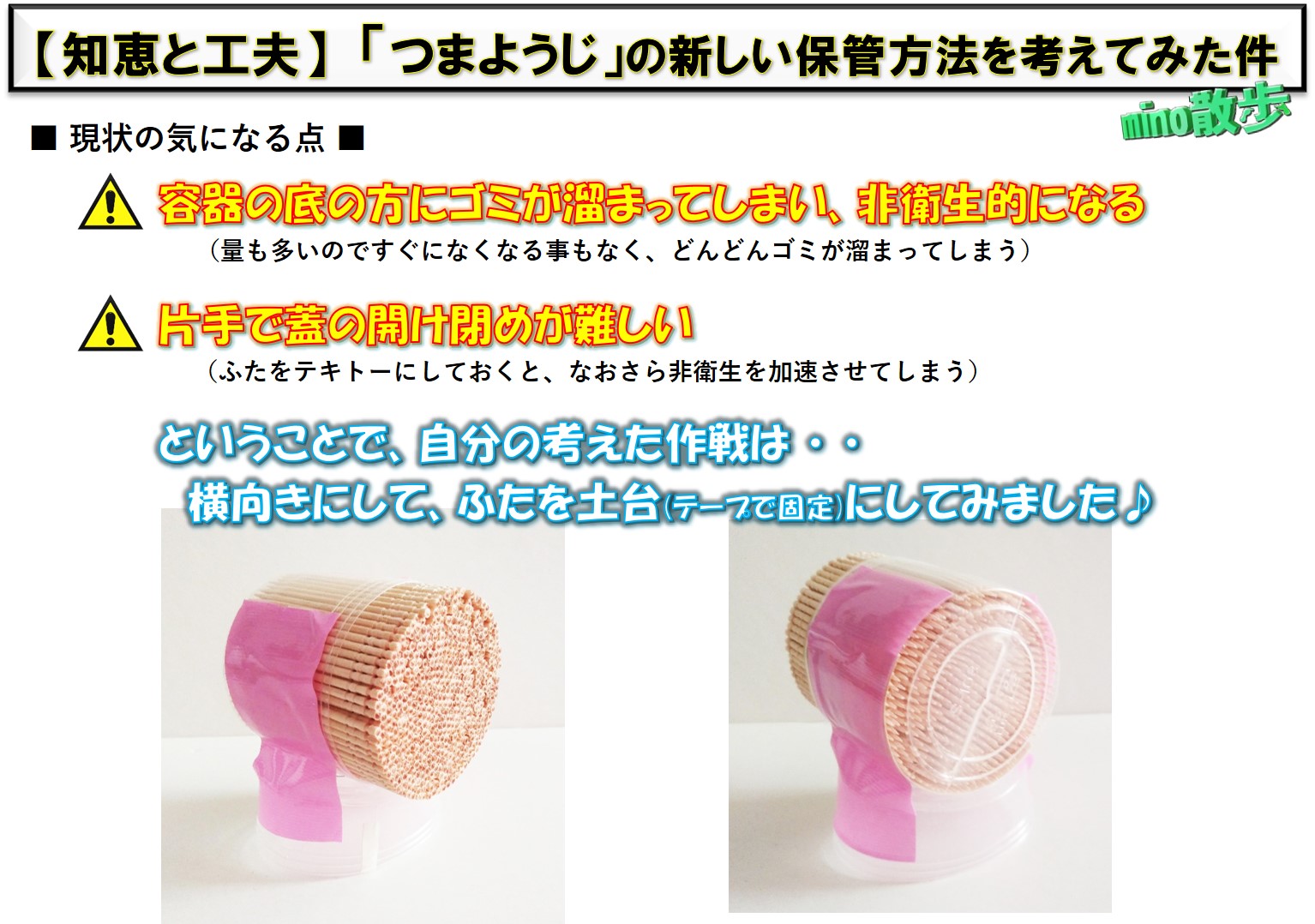 【普段「つまようじ」を使っていて、気になる事があったので、知恵と工夫で、新しい保管方法を考えてみました♪】
