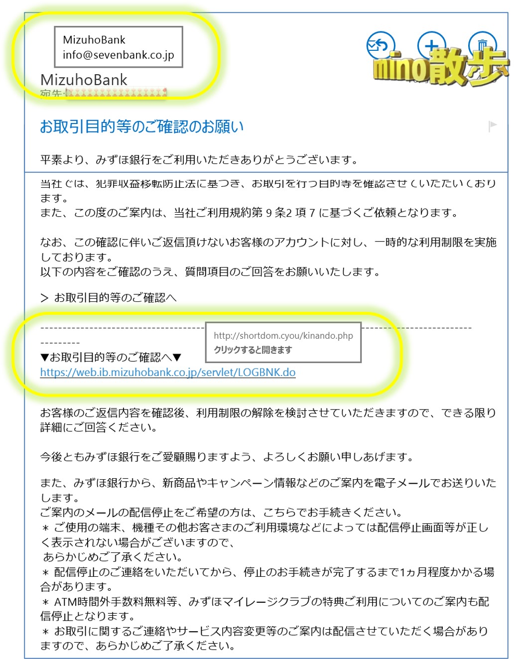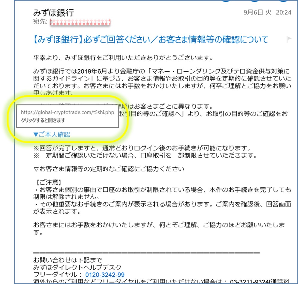 【みずほ銀行からのご連絡】