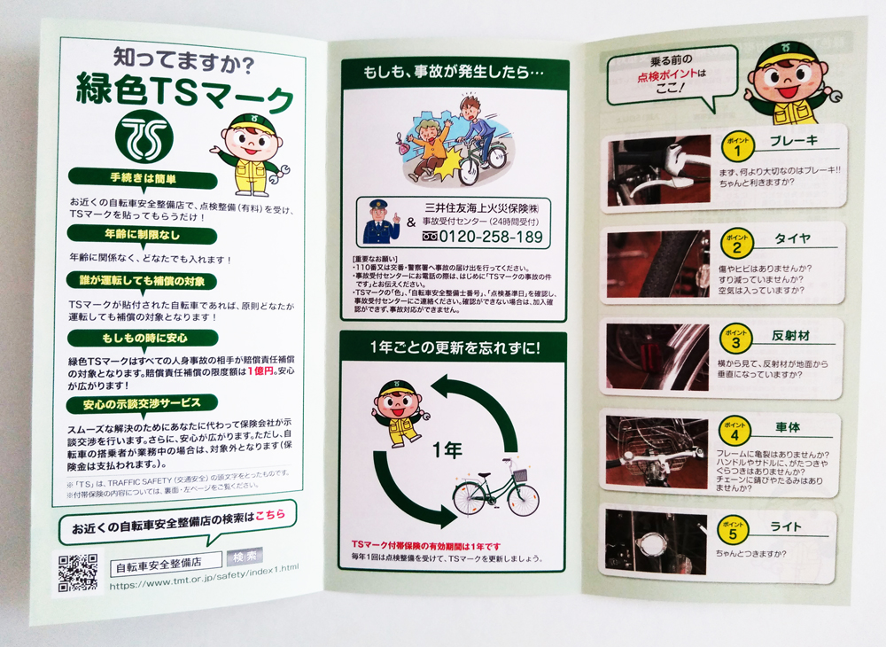 ・2年目 ⇒ 「TSマーク保険」(自転車の使い方によるが修理等は不要)
