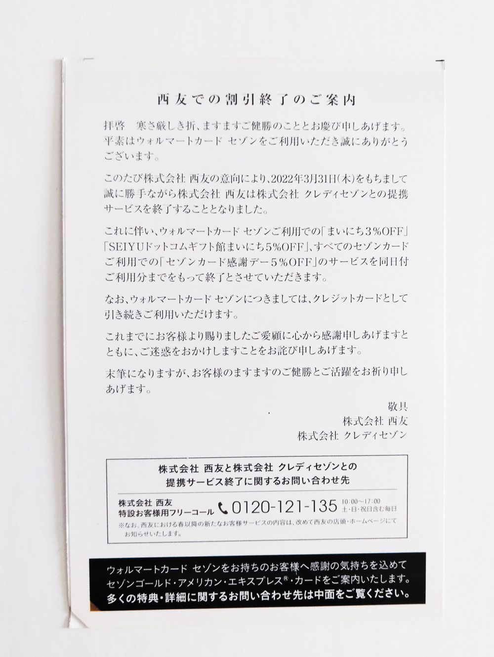 「SEIYU クレジットカード特典の終了」
