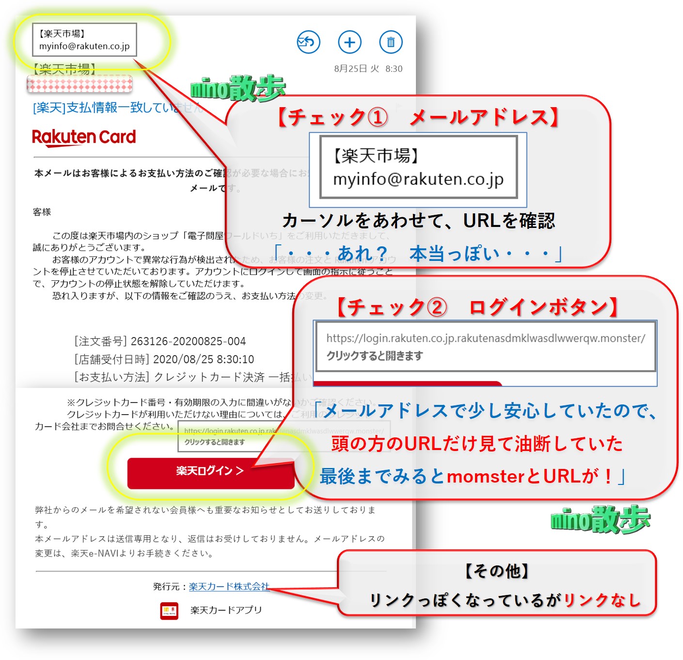 ⇒ 今回の反省点はここ! 「@rakuten.co.jp」という、まさしく本物と思ってしまうようなアドレス